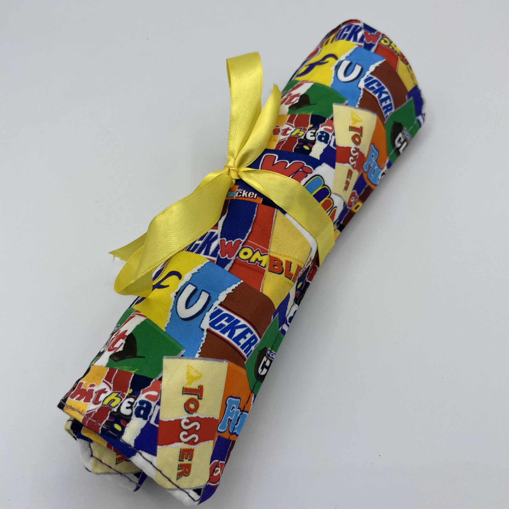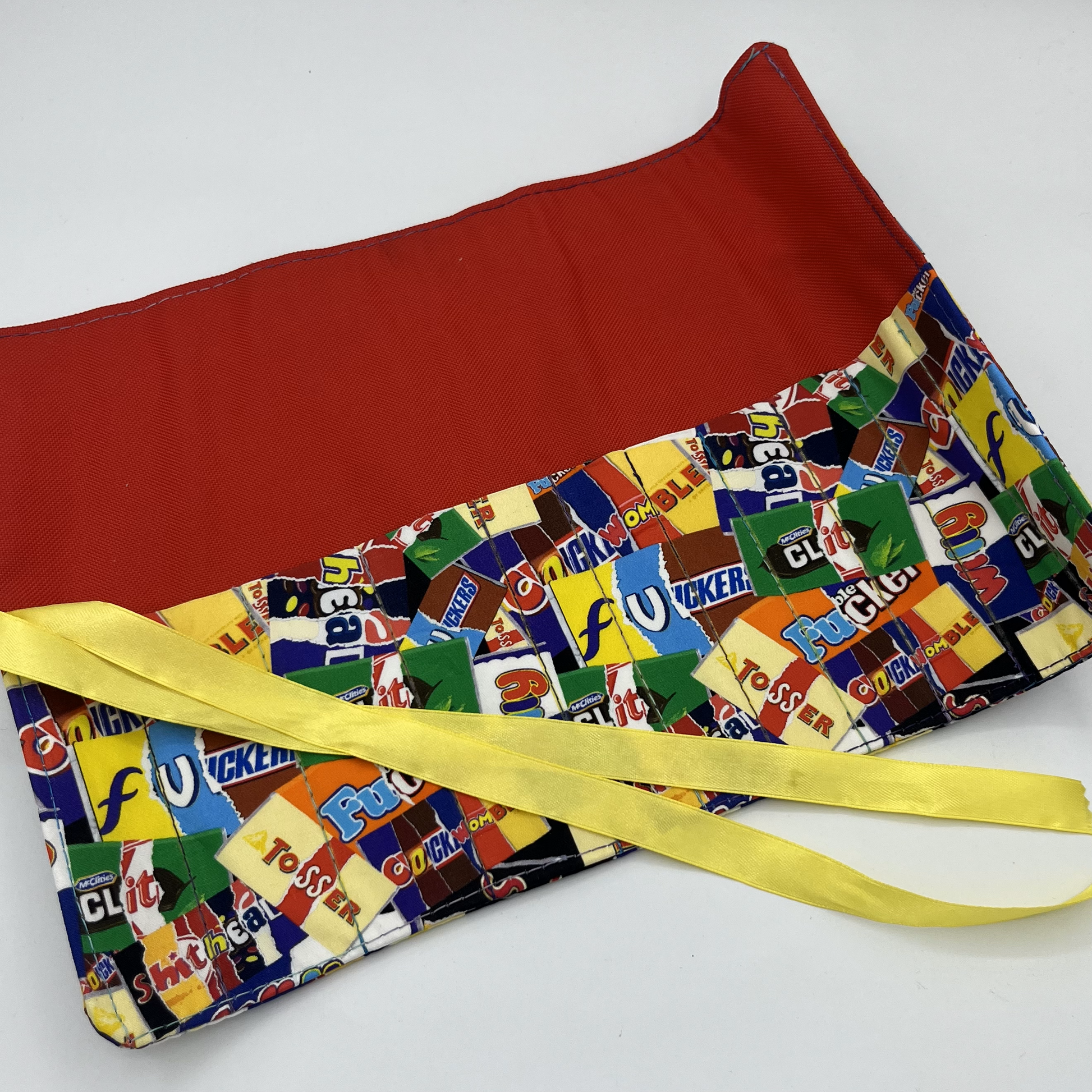 Keep your creative tools organized in style with this handmade brush wrap! Perfect for makeup brushes, paint brushes, or crochet needles, this geeky-themed organizer rolls up for easy storage and transport. Unfold to reveal your tools, then simply roll and go—because even artists and crafters need to embrace their inner neat freak sometimes!
