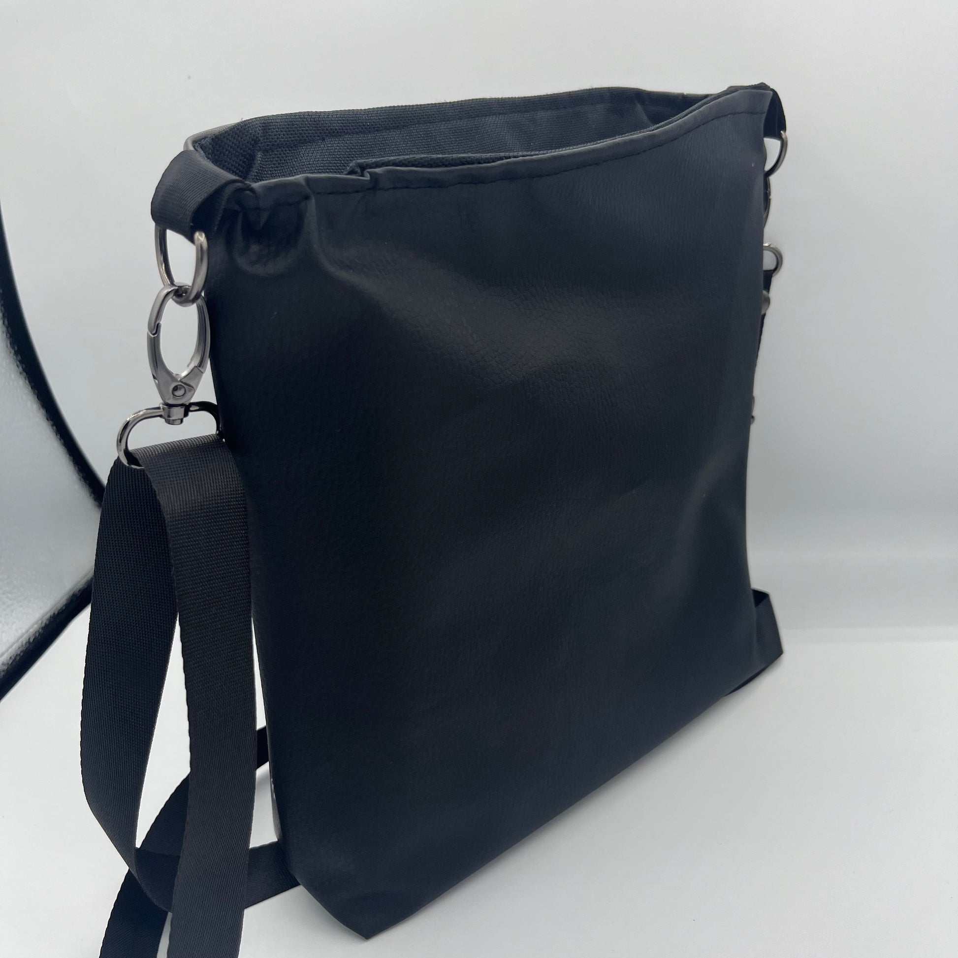 This small crossbody cutie is perfect for everyday adventures, with a zippered pocket for essentials. The geeky and funky design adds a touch of quirkiness to any outfit. Carry everything you need with a playful twist!