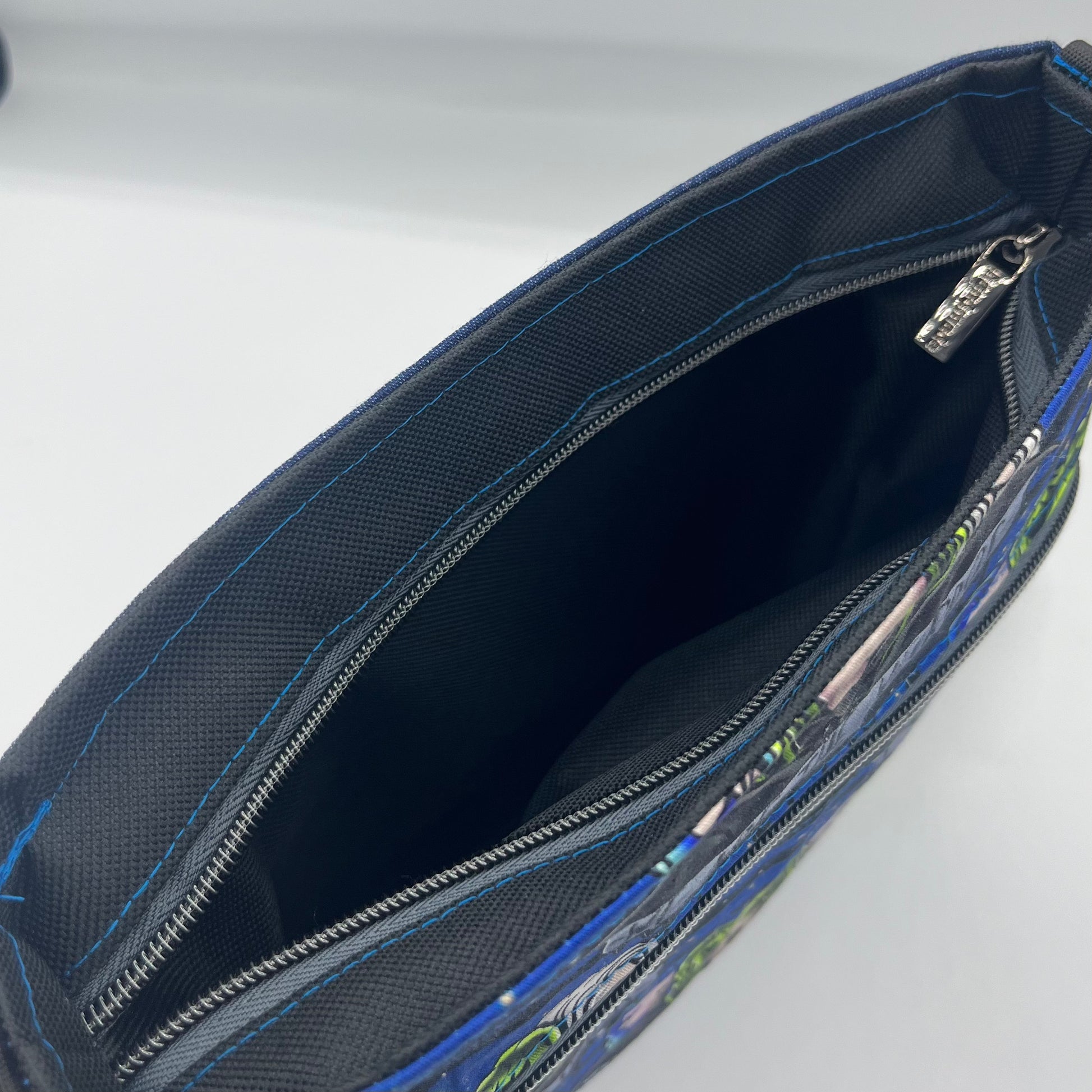 This small crossbody cutie is perfect for everyday adventures, with a zippered pocket for essentials. The geeky and funky design adds a touch of quirkiness to any outfit. Carry everything you need with a playful twist!